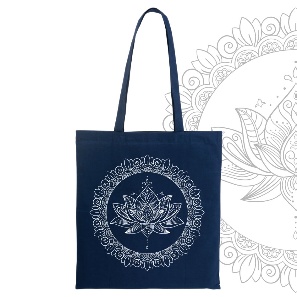 Taška tm. modrá - mandala lotosový květ, 140g/m²