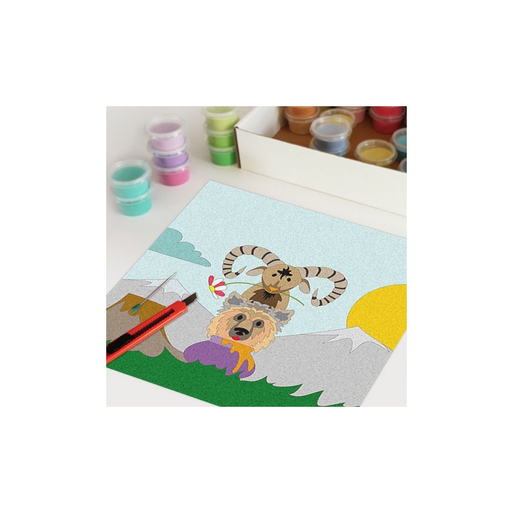 Obrázky vysypávané pískem je kreativní tvoření, které zaujme všechny generace svou jednoduchostí a nepřeberným množstvím barevných variant. Tvoření rozvíjí fantazii, barevné cítění a procvičuje jemnou motoriku prstů. Činnost může působit na uvolnění mysli, meditativně nebo relaxačně. Při tvoření v kolektivu působí pozitivně na týmový duch.Doplňkové parametry