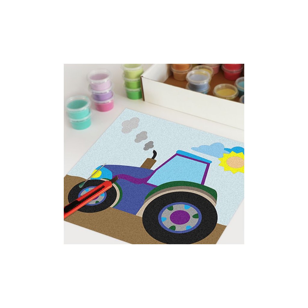 Obrázky vysypávané pískem je kreativní tvoření, které zaujme všechny generace svou jednoduchostí a nepřeberným množstvím barevných variant. Tvoření rozvíjí fantazii, barevné cítění a procvičuje jemnou motoriku prstů. Činnost může působit na uvolnění mysli, meditativně nebo relaxačně. Při tvoření v kolektivu působí pozitivně na týmový duch.Doplňkové parametry