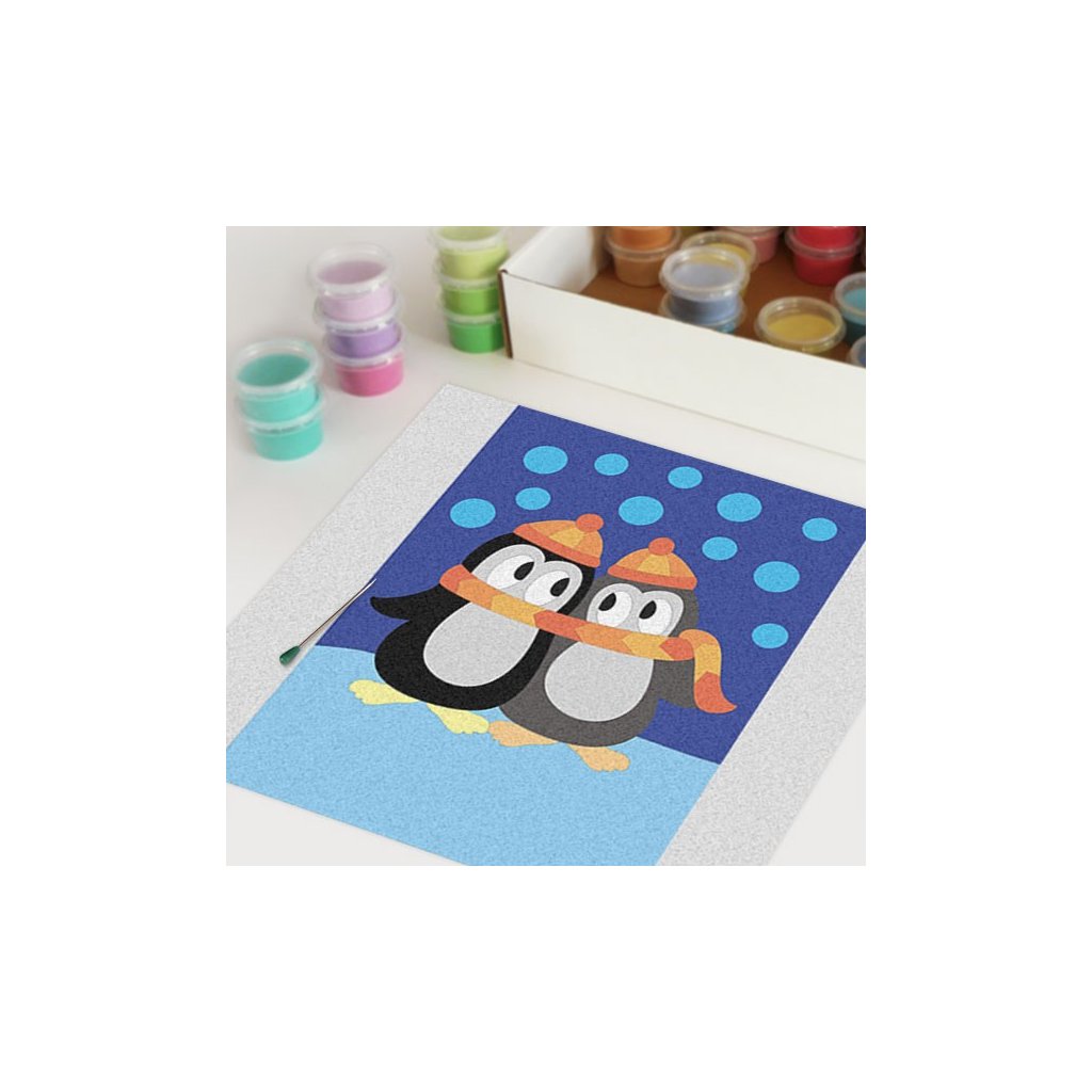 Obrázky vysypávané pískem je kreativní tvoření, které zaujme všechny generace svou jednoduchostí a nepřeberným množstvím barevných variant. Tvoření rozvíjí fantazii, barevné cítění a procvičuje jemnou motoriku prstů. Činnost může působit na uvolnění mysli, meditativně nebo relaxačně. Při tvoření v kolektivu působí pozitivně na týmový duch.Doplňkové parametry