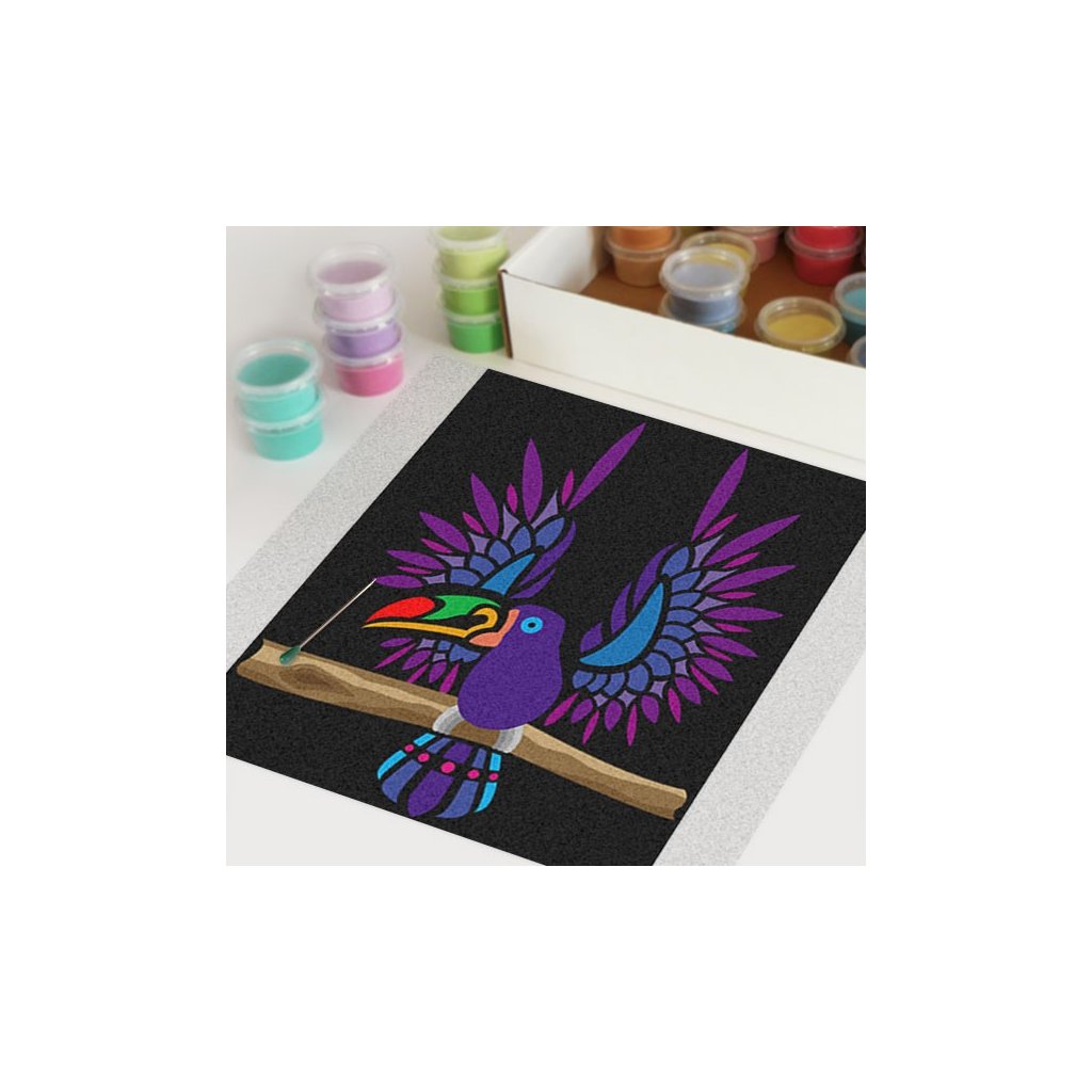 Obrázky vysypávané pískem je kreativní tvoření, které zaujme všechny generace svou jednoduchostí a nepřeberným množstvím barevných variant. Tvoření rozvíjí fantazii, barevné cítění a procvičuje jemnou motoriku prstů. Činnost může působit na uvolnění mysli, meditativně nebo relaxačně. Při tvoření v kolektivu působí pozitivně na týmový duch.Doplňkové parametry