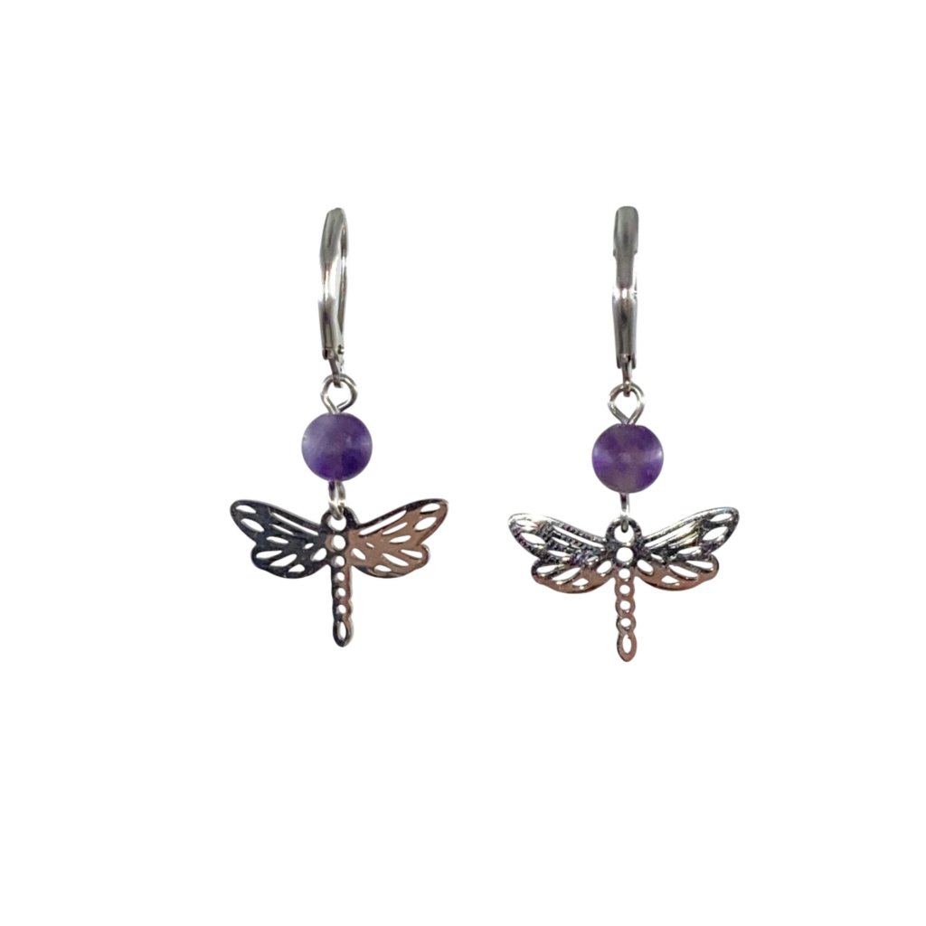 Tichý let – Náušnice z ametystu a nerezové oceli