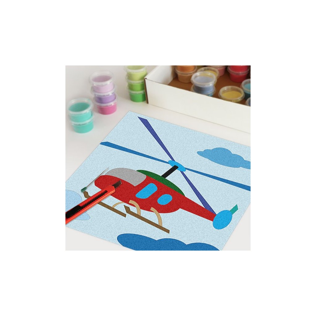 Obrázky vysypávané pískem je kreativní tvoření, které zaujme všechny generace svou jednoduchostí a nepřeberným množstvím barevných variant. Tvoření rozvíjí fantazii, barevné cítění a procvičuje jemnou motoriku prstů. Činnost může působit na uvolnění mysli, meditativně nebo relaxačně. Při tvoření v kolektivu působí pozitivně na týmový duch.Doplňkové parametry