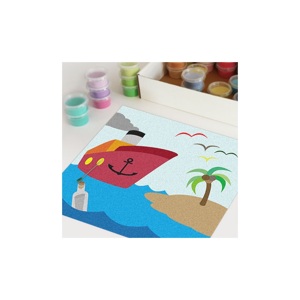 Obrázky vysypávané pískem je kreativní tvoření, které zaujme všechny generace svou jednoduchostí a nepřeberným množstvím barevných variant. Tvoření rozvíjí fantazii, barevné cítění a procvičuje jemnou motoriku prstů. Činnost může působit na uvolnění mysli, meditativně nebo relaxačně. Při tvoření v kolektivu působí pozitivně na týmový duch.Doplňkové parametry