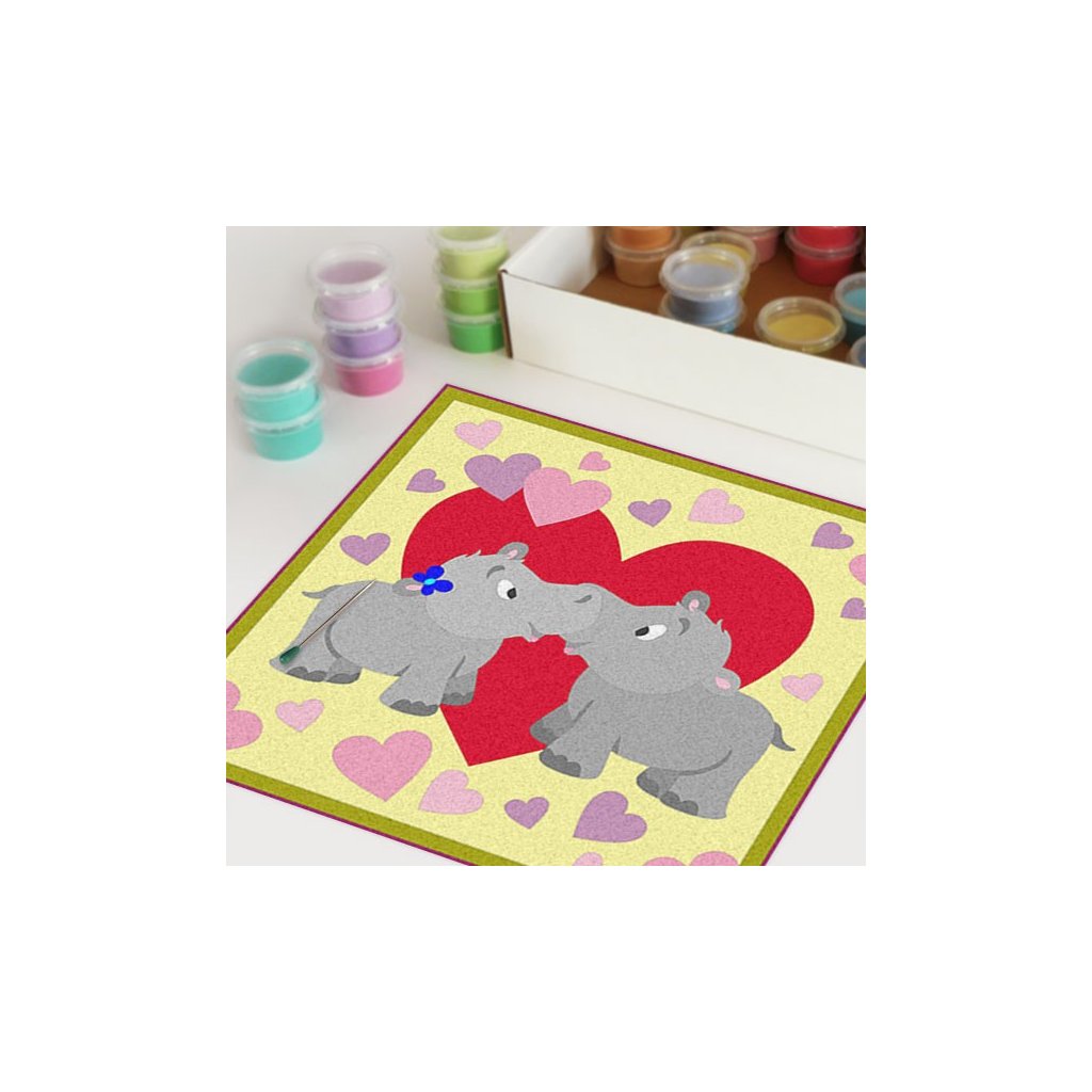 Obrázky vysypávané pískem je kreativní tvoření, které zaujme všechny generace svou jednoduchostí a nepřeberným množstvím barevných variant. Tvoření rozvíjí fantazii, barevné cítění a procvičuje jemnou motoriku prstů. Činnost může působit na uvolnění mysli, meditativně nebo relaxačně. Při tvoření v kolektivu působí pozitivně na týmový duch.Doplňkové parametry