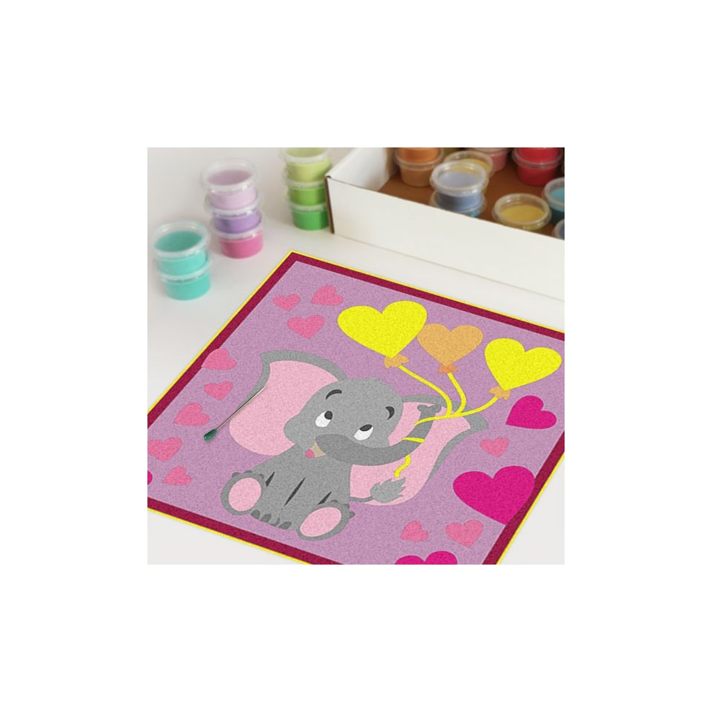 Obrázky vysypávané pískem je kreativní tvoření, které zaujme všechny generace svou jednoduchostí a nepřeberným množstvím barevných variant. Tvoření rozvíjí fantazii, barevné cítění a procvičuje jemnou motoriku prstů. Činnost může působit na uvolnění mysli, meditativně nebo relaxačně. Při tvoření v kolektivu působí pozitivně na týmový duch.Doplňkové parametry