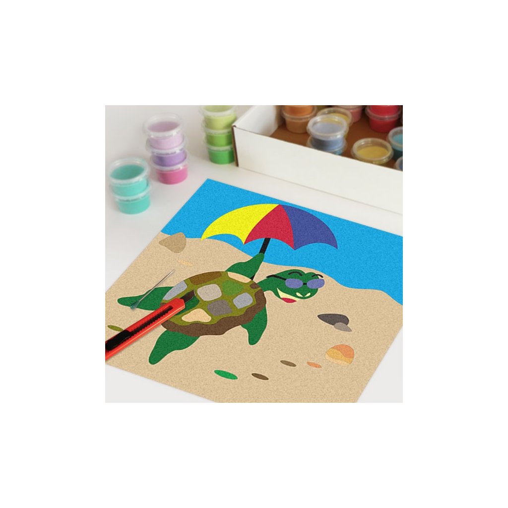 Obrázky vysypávané pískem je kreativní tvoření, které zaujme všechny generace svou jednoduchostí a nepřeberným množstvím barevných variant. Tvoření rozvíjí fantazii, barevné cítění a procvičuje jemnou motoriku prstů. Činnost může působit na uvolnění mysli, meditativně nebo relaxačně. Při tvoření v kolektivu působí pozitivně na týmový duch.Doplňkové parametry