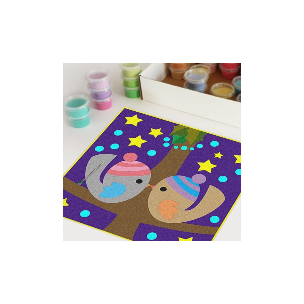 Obrázky vysypávané pískem je kreativní tvoření, které zaujme všechny generace svou jednoduchostí a nepřeberným množstvím barevných variant. Tvoření rozvíjí fantazii, barevné cítění a procvičuje jemnou motoriku prstů. Činnost může působit na uvolnění mysli, meditativně nebo relaxačně. Při tvoření v kolektivu působí pozitivně na týmový duch.Doplňkové parametry
